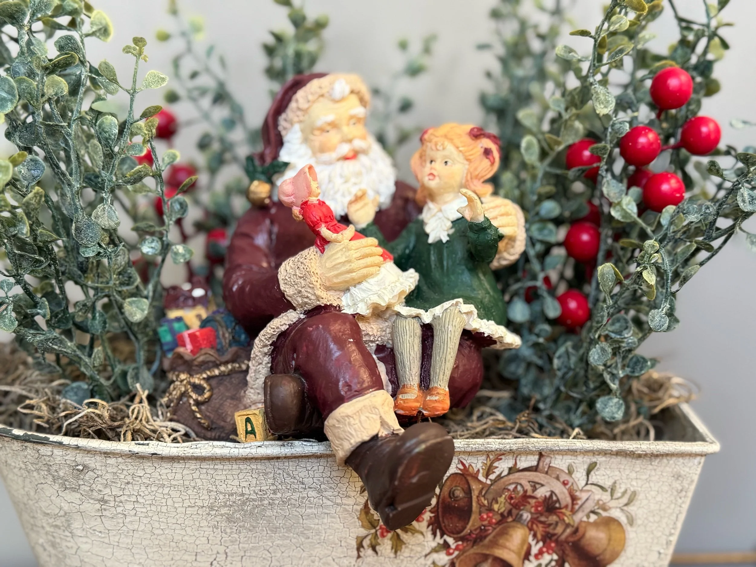 entire set will be sold with greenery (from Julie’s Designs and Signs) and the Vintage Santa stocking holder.