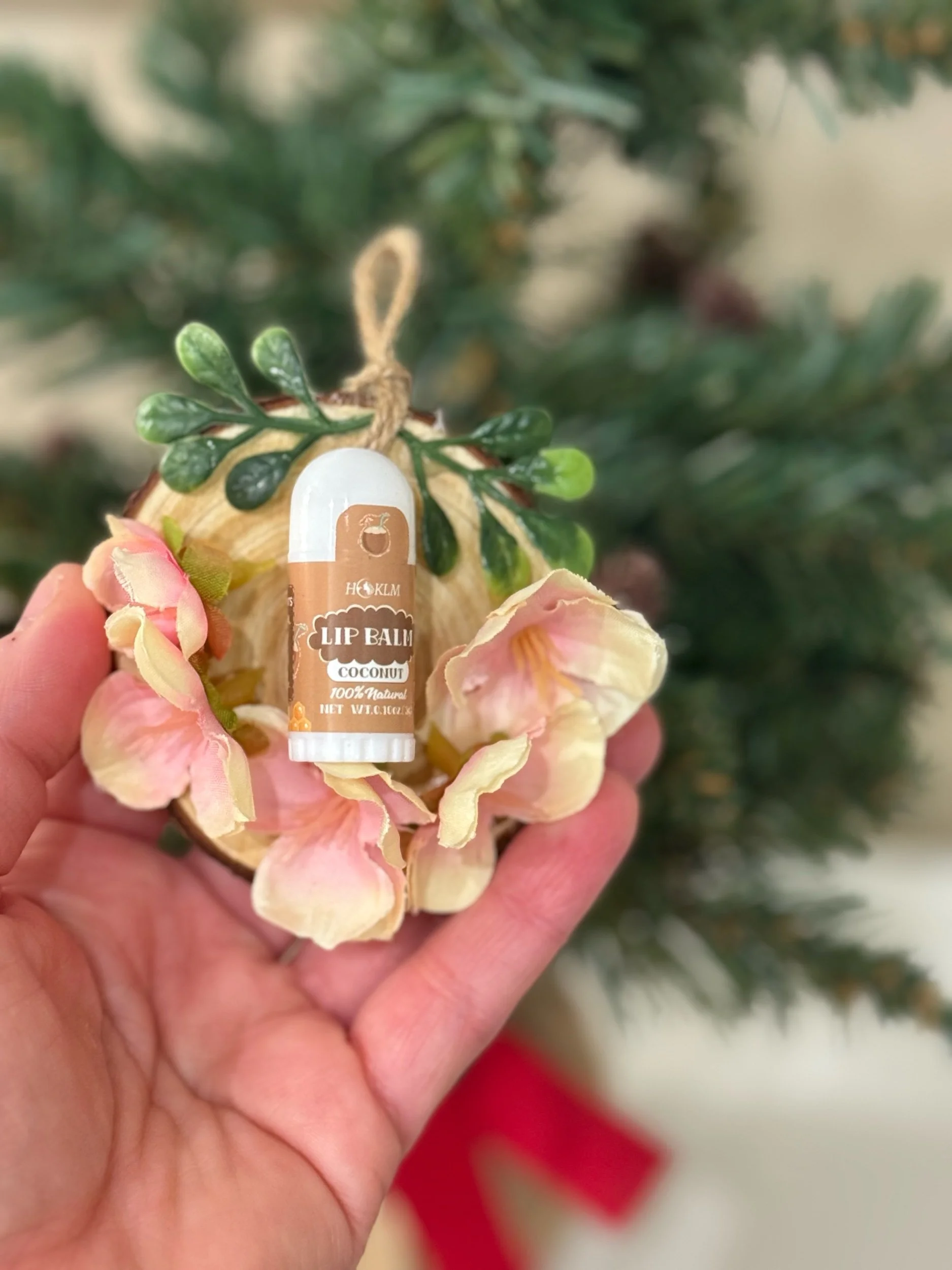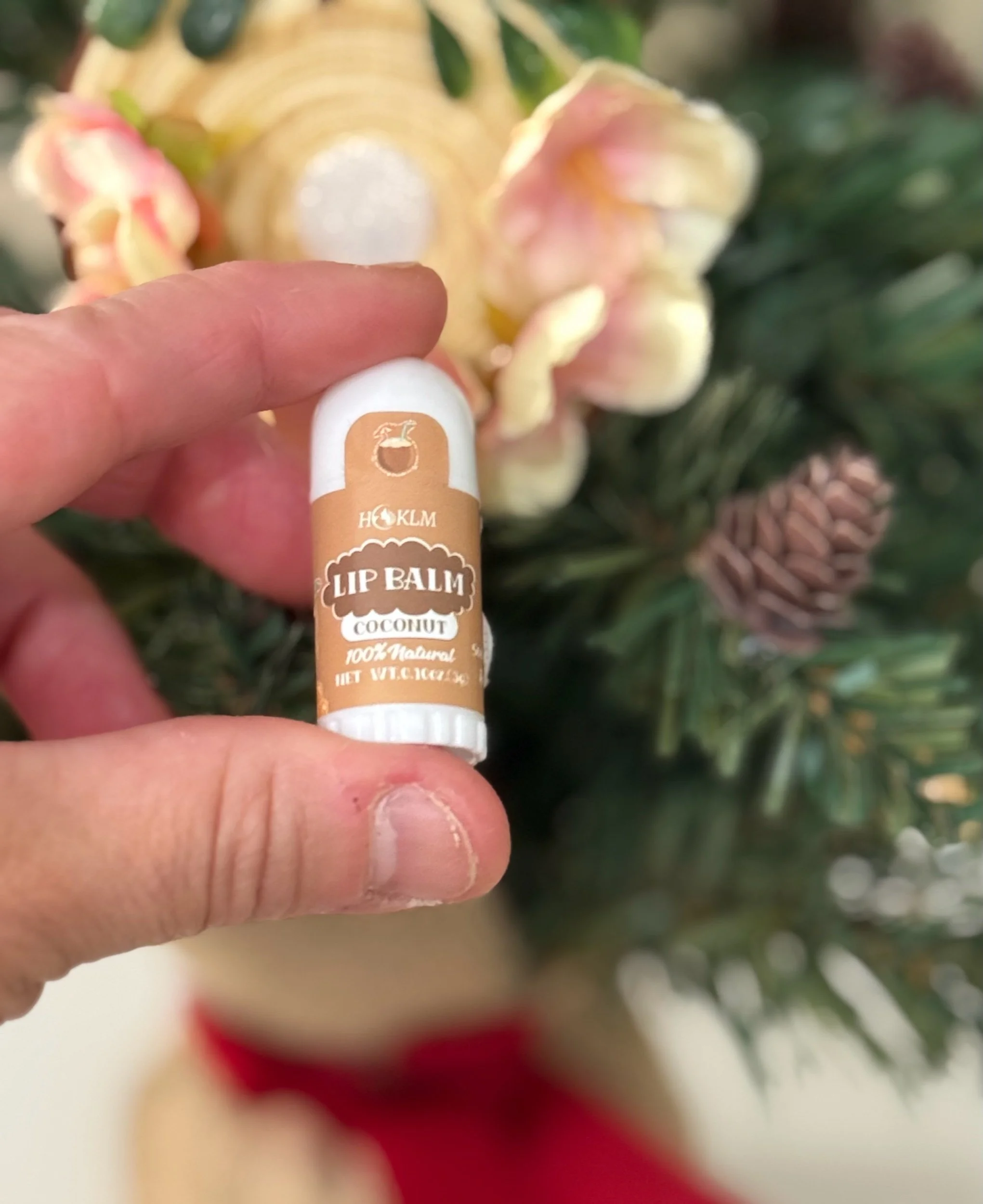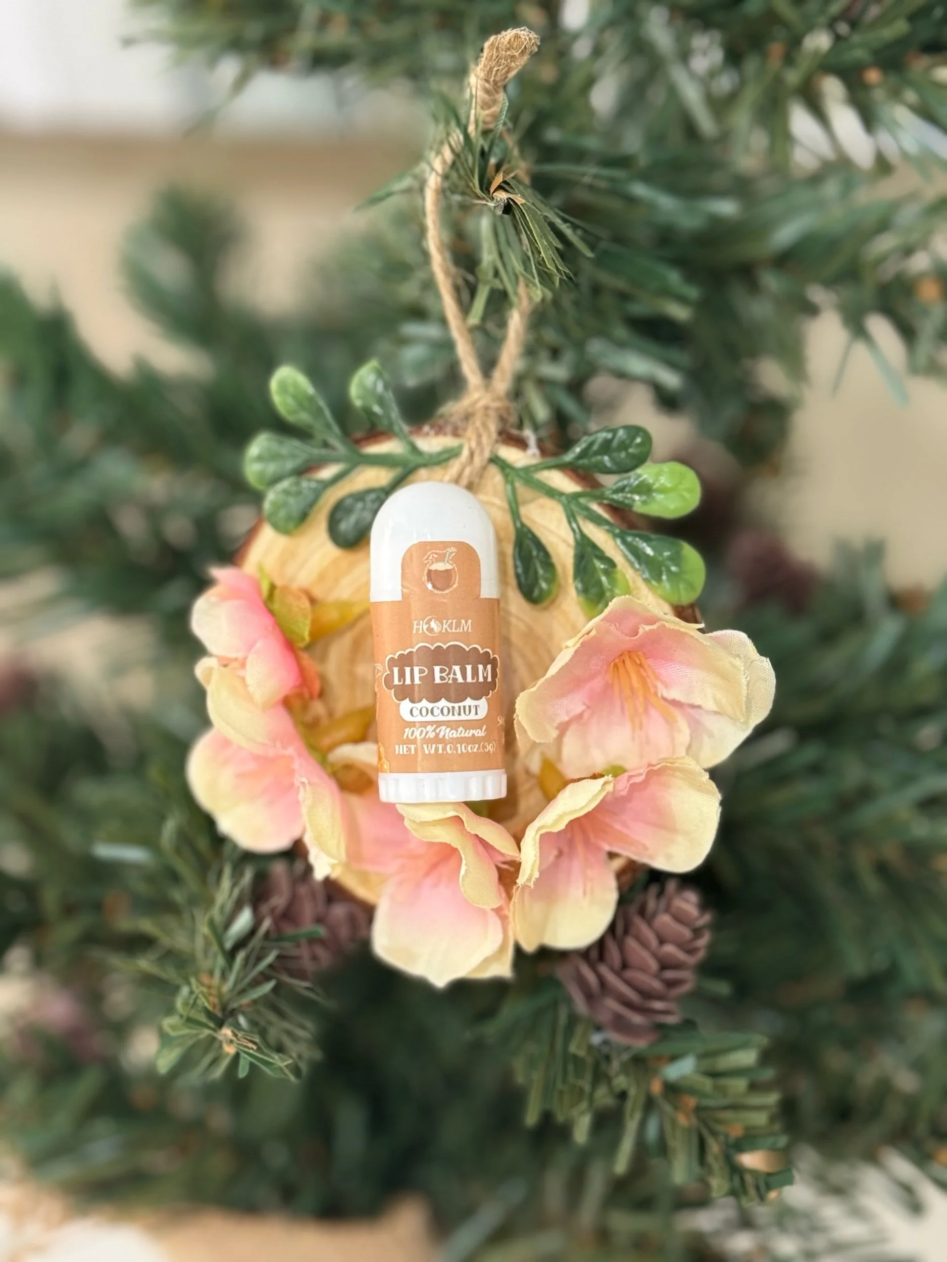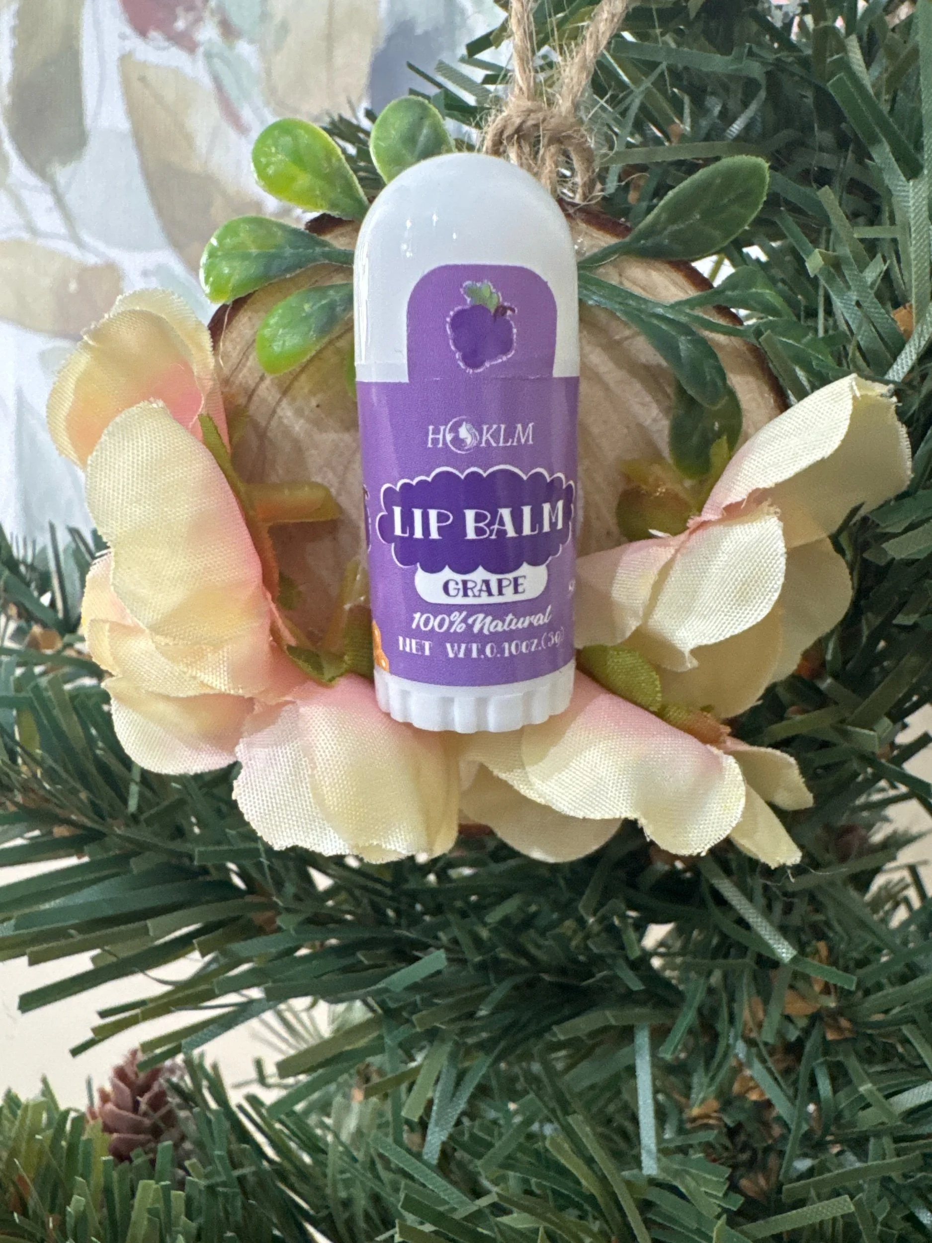 Stocking Stuffer: lip balm on wood round ornament